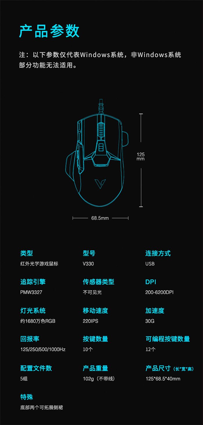 ◆产品链接:雷柏V330幻彩RGB游戏鼠标