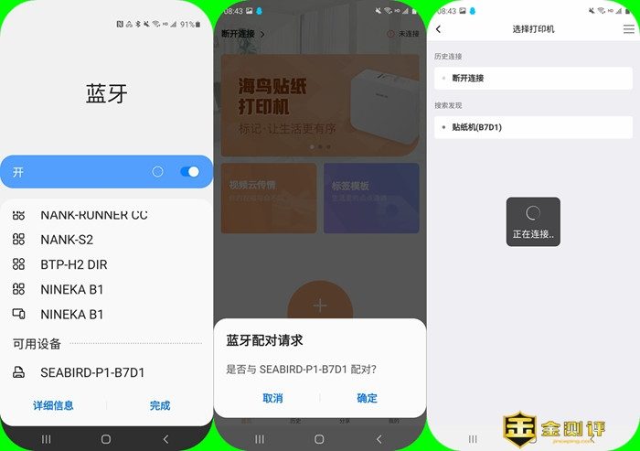 通过下载海鸟贴纸打印机APP,将产品点击蓝牙键,提示蓝牙等待连接,通过手机蓝牙搜索到产品,选择SEABIRD-XXXXX去连接,然后打开APP进行使用即可。通过手机连接使用产品无法使用键盘模式。