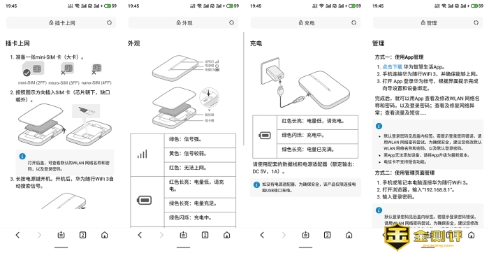 华为随行WiFi3的配件也仅有说明书、保修卡、数据线而已,如产品一样简洁,不过大家一定要注意的是都2020年了,鬼知道随行WiFi3竟然不支持nano卡,而是N年前的大SIM卡,这个...可以吐槽吗?我怕海军来喷我(又不是不能用),哈哈。