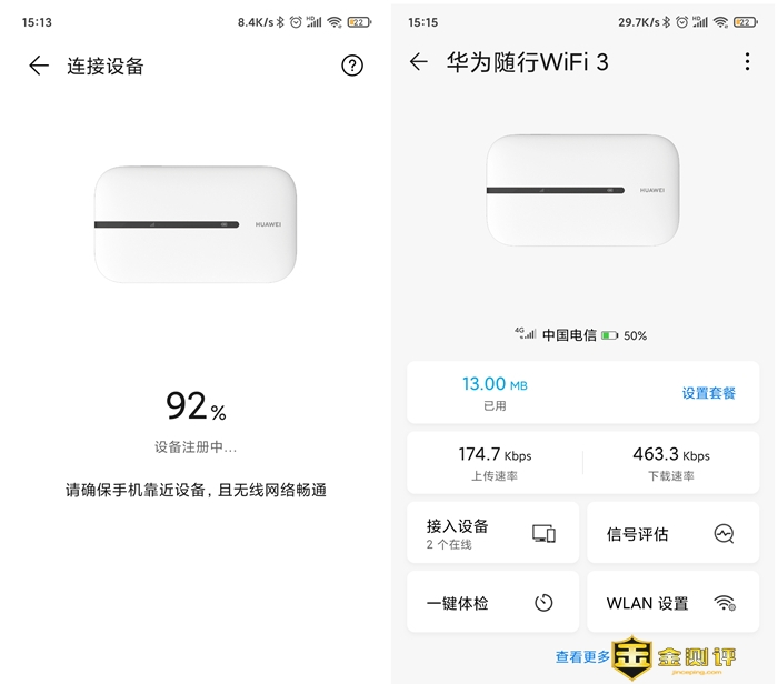 华为随行WiFi 3最大可支持16台设备同时连接,作为一个随身WiFi,这个带机量已经足够使用了。至于信号穿墙性能,既然是随身设备,也就没有体验测试穿墙的必要,这屋信号不行,把随行WiFi带着拿过来就是。