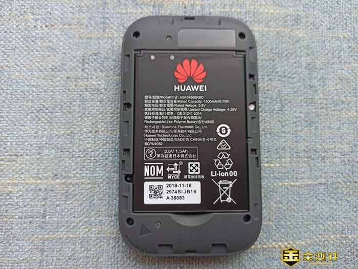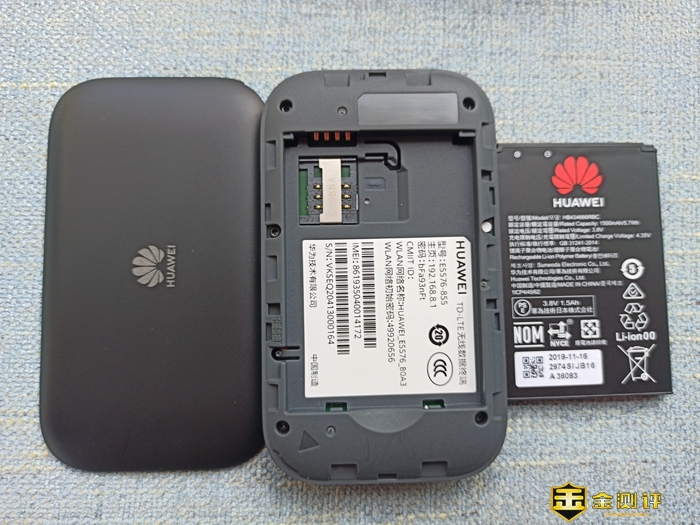 打开后盖,可算是大有乾坤,后盖的内侧贴有路由设置的二维码以及网络相关信息、1500mAh电池、以及不知为啥是大号的流量卡槽。电池待机时间可达350小时,使用时长为6小时。