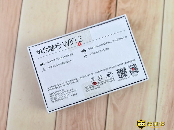 华为随行WiFi 3的包装盒很小巧,包装盒右上角是华为的菊花Logo,左上是产品的品名和信号,下方则是产品的渲染图,包装盒的背面介绍了产品的功能特点