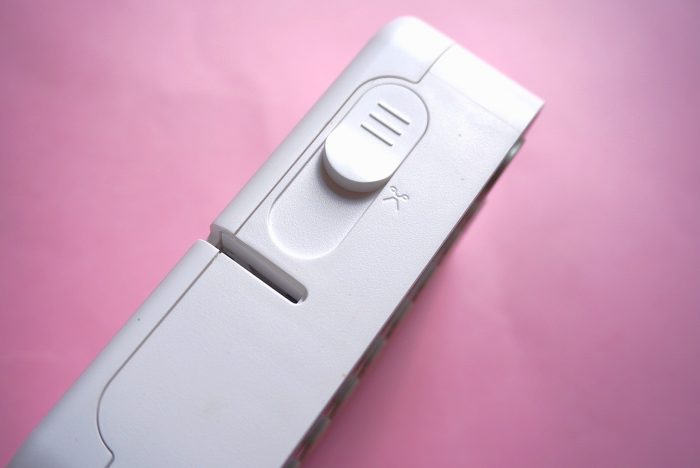 顶部是打印机的裁切按键,使用时需要推动按键进行裁剪。这种复古的裁剪方式让使用者的体验感更强。