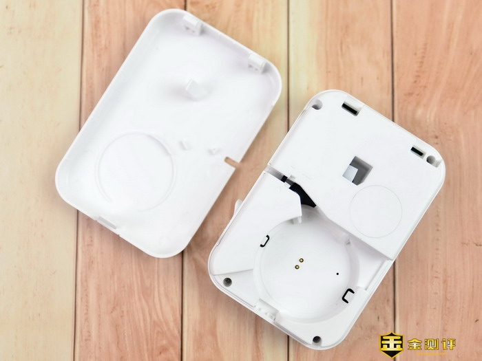 打开后盖就可以看到海鸟贴纸打印机,只能看到标签纸盒的安装位置,这里比较有趣的是还有2个金属触点。