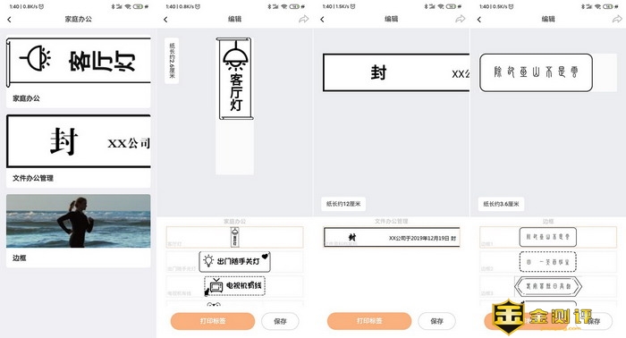 标签模板里有5大类,每一大类中还有若干小类别,在小类别里面才是具体的标签模板,海鸟贴纸打印机的APP里有200多种的标签模板可供用户选择,这样适用的场景就更多了,不需要刻意去设计款式,直接套用模板就能获得出色的效果了。姓名贴里只有小同学的模板。