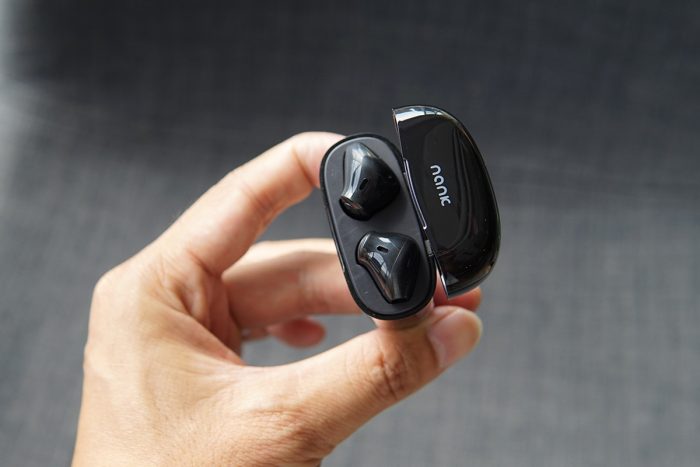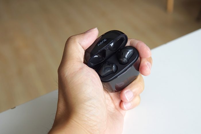 从正面来看,南卡Lite的耳机盒好像一块圆润的鹅卵石,在这个看脸的时代,颜值在线的物件总能令人眼前一亮。南卡Lite耳机重量仅为4g,比A4纸还要轻,无感佩戴让耳朵少受累。
