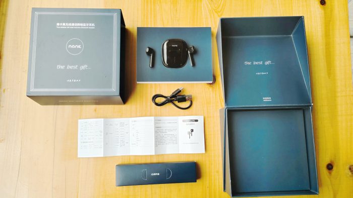 再来个NANK南卡Lite半入耳运动蓝牙耳机开箱完整的全家福:耳机本体、充电线,使用说明书、以及充电盒,配件还算十分齐全。