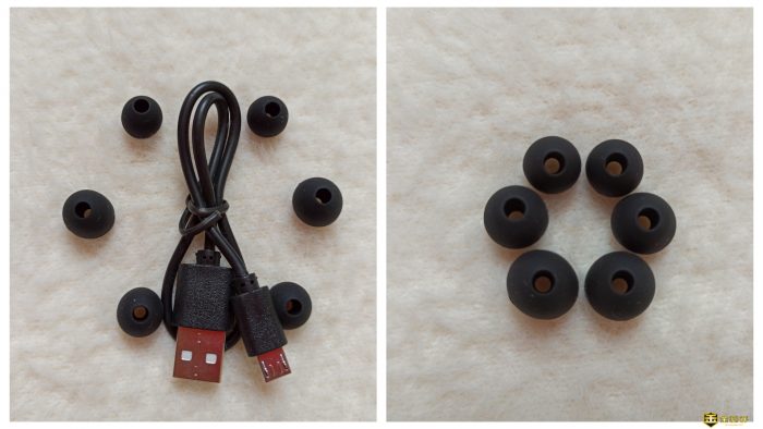 配件有用户使用手册一本、USB充电线一根以及三对大小不一的硅胶耳帽,用户可以根据需求自行调换,总有一套更适合你。