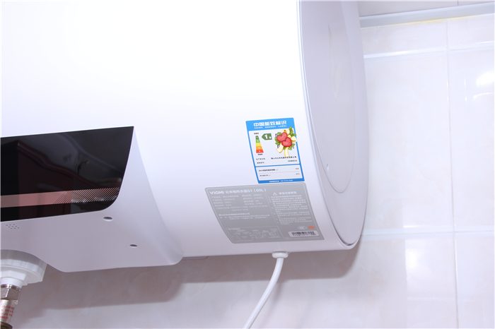 热水器采用了最为节省材料的圆柱形外观,配色采用了比较纯净的白色,属于百搭配色,比较容易与常规的家庭装修风格相匹配。60L容量款的外观长度843mm,圆筒直径410mm。
