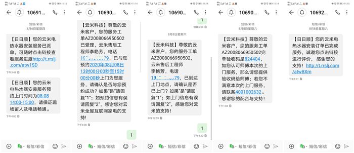 关于售后,云米提供了8年质保,8年内内胆漏水包换整机、部分内部零件免费更换,前三年免费上门服务,使用起来更安心。另外,在安装之前安装客服可以说是不厌其烦反复来电和短信进行确认,师傅上门后态度也是相当热情,沟通充分,技术熟练,感受到云米的安装服务相当周到。