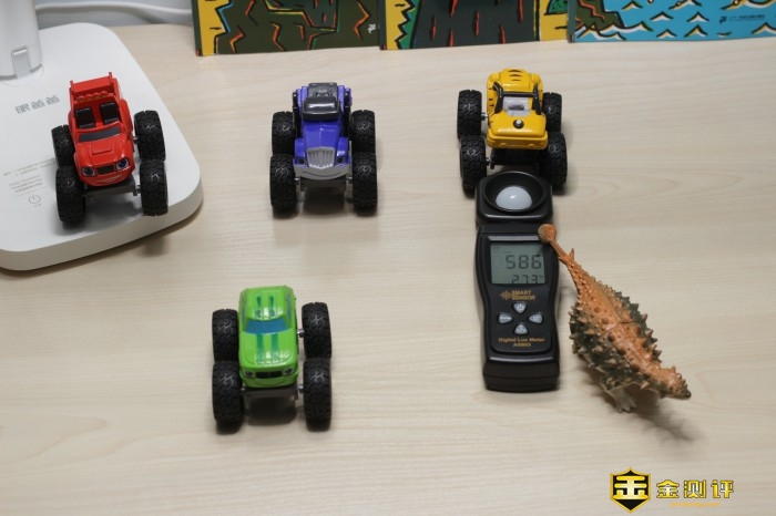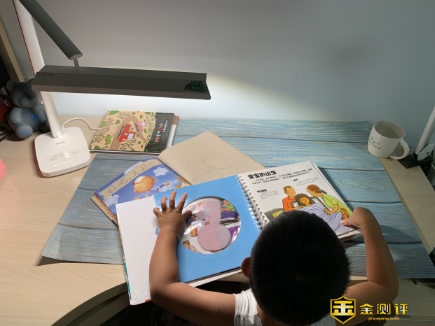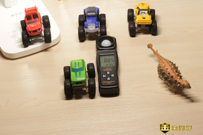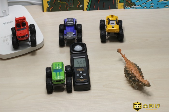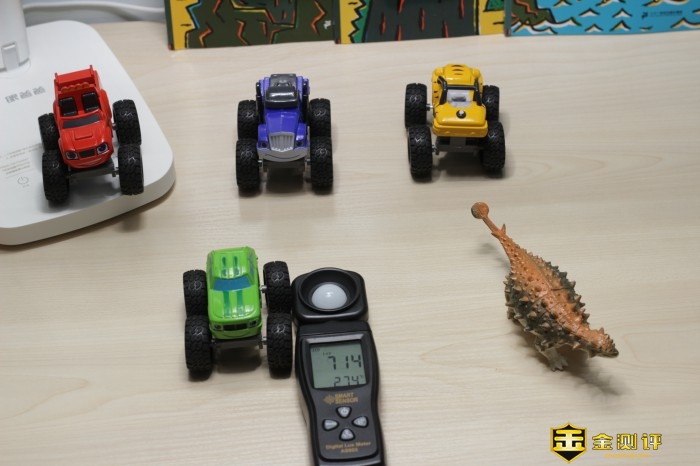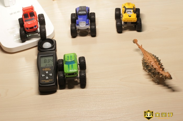 眼爸爸学习台灯read1光线更加均匀,可以让桌子每个角落都达到适合学习的亮度,通过不同的参照物进行测试。