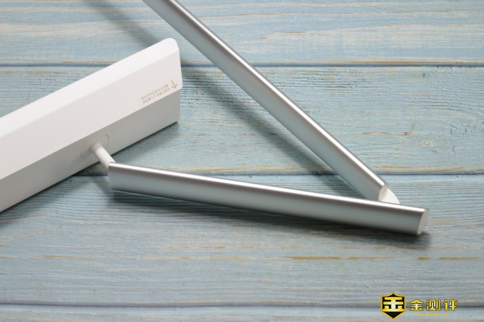 眼爸爸学习台灯支臂采用了三段式连接,分为长灯杆、短灯杆以及灯头杆,连接处都可以进行调整,调整时的阻尼感很强。