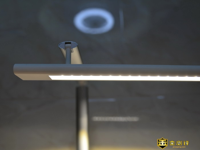 灯头部分,长度36cm,这个灯头可以水平旋转180°,垂直调节110°。这样的双杆调节,5轴转动,基本上可以适应各种摆放位置,让光线照亮桌子的每个角落。比较有意思的是灯头与短灯杆的连接部位并不是在灯头的中间,而是在侧面,这样会更有利于灯头的旋转调节。