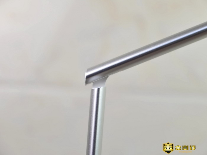 与底座相连的长灯杆,长度为42cm。表层采用铝合金材质,经过金属喷砂工艺处理,质感也是相当出色。这节灯杆,垂直方向可以25°调节,水平方向可以左右各旋转120°,可调节的空间还是比较大的。