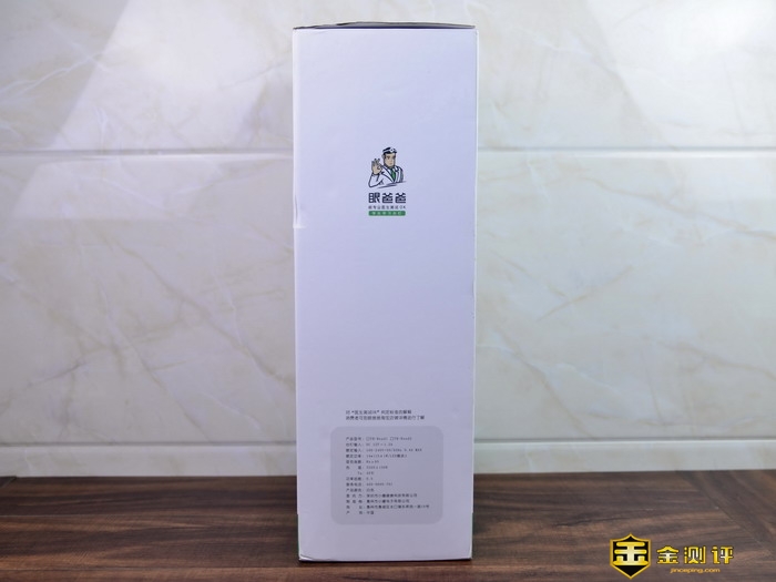 眼爸爸学习台灯read1的包装盒还挺大的,左上角是眼爸爸的品牌Logo,包装盒的中间是眼爸爸学习台灯read1的渲染图,右上角和下方则是眼爸爸学习台灯read1的功能特点介绍。包装盒的侧面也印有眼爸爸的品牌Logo,下方印有眼爸爸学习台灯read1的规格参数信息。
