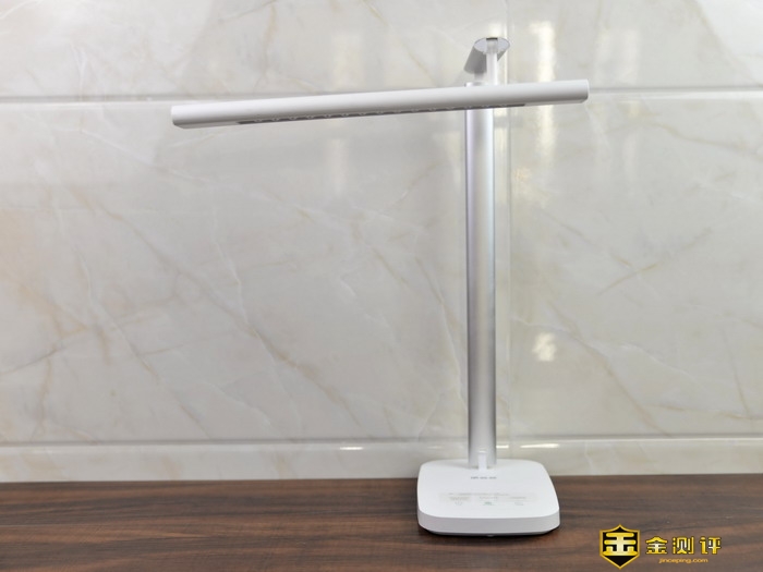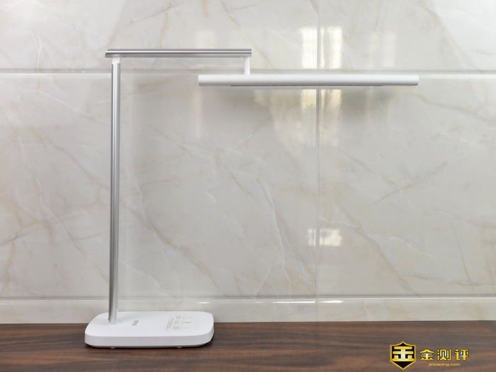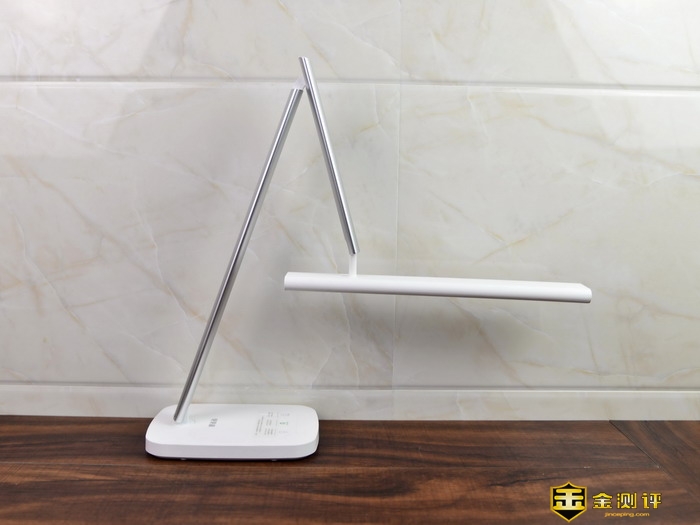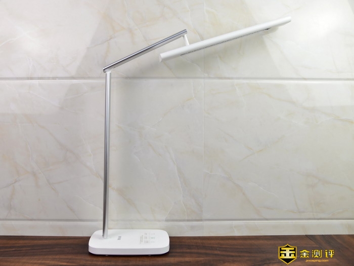 由于眼爸爸学习台灯read1的灯头与短灯杆的连接部位不是在灯头中间,所以这个角度摆放的时候,灯头靠外的一侧会有些下垂,建议这个角度的调节杆增加些许角度的左右调节空间,即可让灯头保持水平不下垂。不过也就是这个角度会,如果将灯头转90°与短灯杆同向,就可以调节角度让整个短灯杆+灯头保持水平。