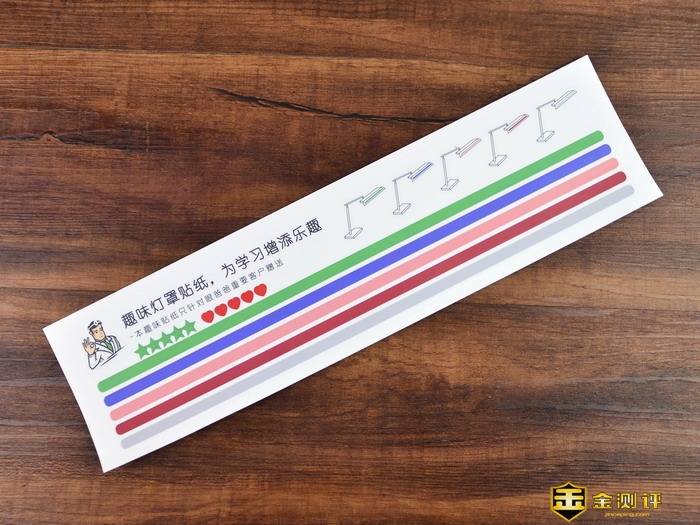 眼爸爸学习台灯read1还附送了一张趣味灯罩贴纸,这里有5张不同颜色的贴纸,可以贴在灯罩上。