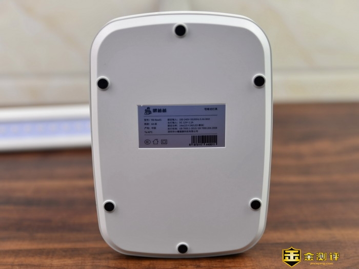 底座的底部中间贴有一张铭牌标签,上面有相关的规格参数信息。并且在四边都设计有防滑胶垫,确保眼爸爸学习台灯read1的稳定性。