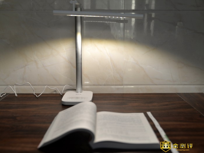 我关闭了周围的所有灯,然后拿来一本书来阅读测试,书摆放的位置复合书本中心与台灯照射桌面中心25CM的距离,这时候整本书各个位置的光线都相当的均匀,在书本上的光线看起来也是相当的柔和,这样的亮度恰到好处,此时阅读,眼部的感受就相当舒服了。