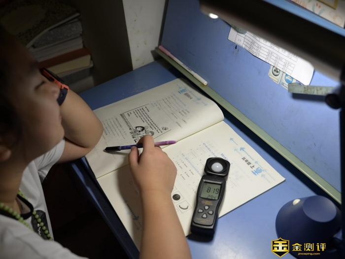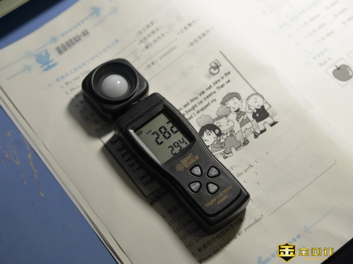 这款是原来孩子用的台灯,放在小桌子右上角,可以明显的感觉到右侧亮度远胜于左侧。当然,这样的描述太抽象,所以接下来就用照度计来检测。