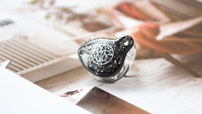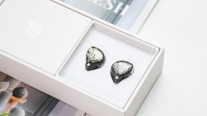 外侧的盖板部分采用深灰色打底,表面辅以星空图案的电子追,锦瑟香也的Logo被包裹其中。在盖板与腔体固定的一端还设计了类似钻石的造型,诸多细节处理都让这款耳机显得非常精致。
