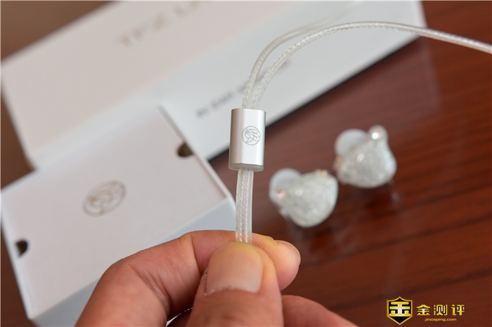 此次拿到的这款为闪白透明色,耳机外壳壳体为白色透明设计,搭配以银色的零星点缀,表面则是TFZ的图形LOGO。