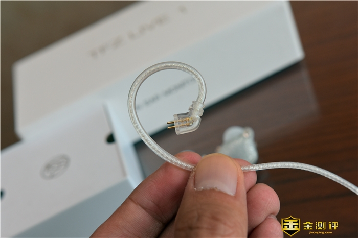 耳机单边重量仅为3.8g,佩戴时轻盈舒适。线材预先做了弯耳的设计,便于其悬挂于耳廓上,增强佩戴的稳定性。