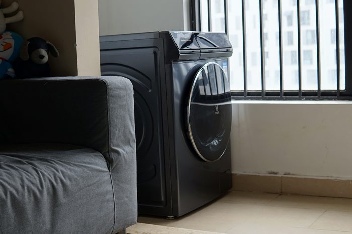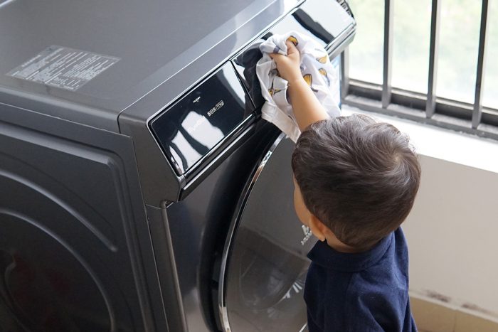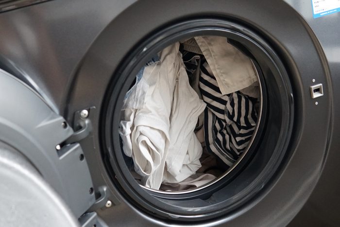 继续塞入脏衣服,一周攒下来的衣服量还是挺多的,看着滚筒的空间好像已经塞满了。