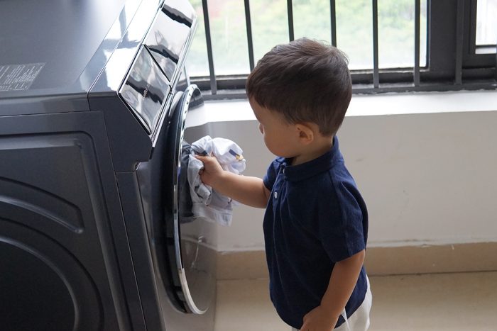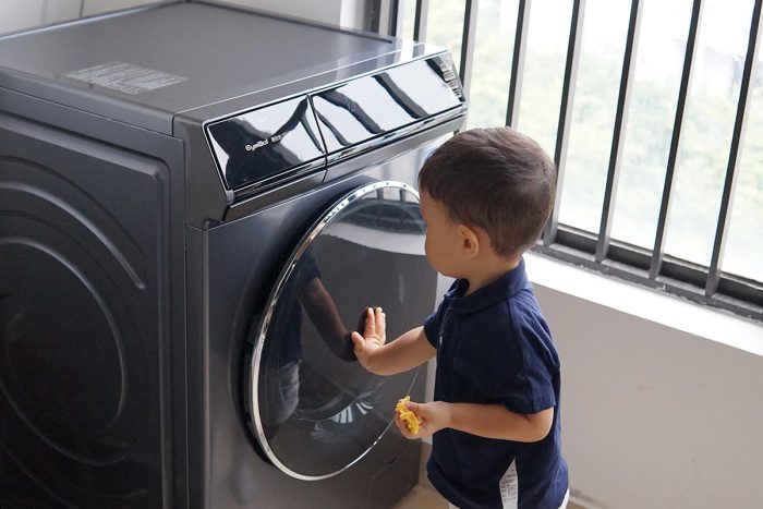换了新的洗衣机,高兴的不止我老婆,还有我儿子。刚两岁的小朋友对这台洗衣机充满兴趣,这里按按,那里扣扣,又拿来他的睡衣,叫着“洗~洗~”,就是找不到放衣服的入口,这画面看着真是搞笑,哈哈。