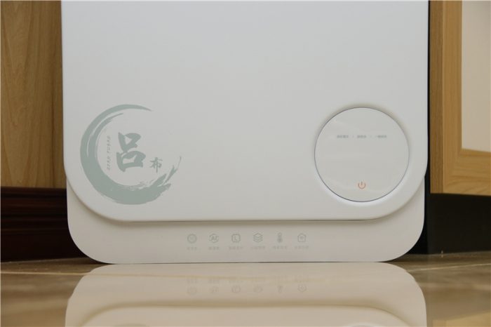 在前面板的下方,左侧设计了一个水墨风格的吕布标志,右侧则是它的圆形触控屏。呈现了一个对称的设计,所以它的外观还是很受看的。再加上这样的百搭配色,与家中的装修风格也很容易的融合在一起。