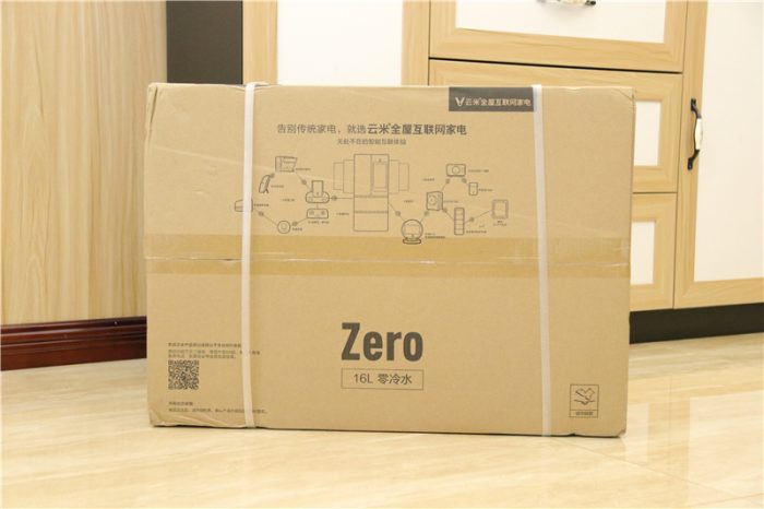 我们先来看下这款云米Zero 吕布S1的包装方面,采用了传统常见的牛皮纸箱包裹,包装外面其实还有一层塑料膜,这样可以起到不错的密封作用。包装的封面最显眼的要数Zero这个logo了,其次就是产品型号,以及整个云米大家庭(家电系列)网络图。