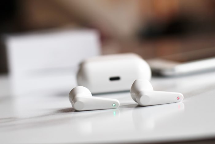 充电盒里耳机摆放位置很是节省空间,空间利用度高,充电盒的体积就可以做的更小,更方便用户随身携带。