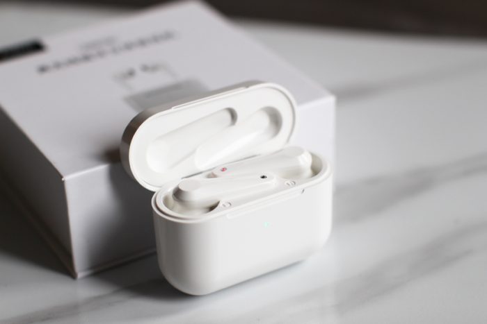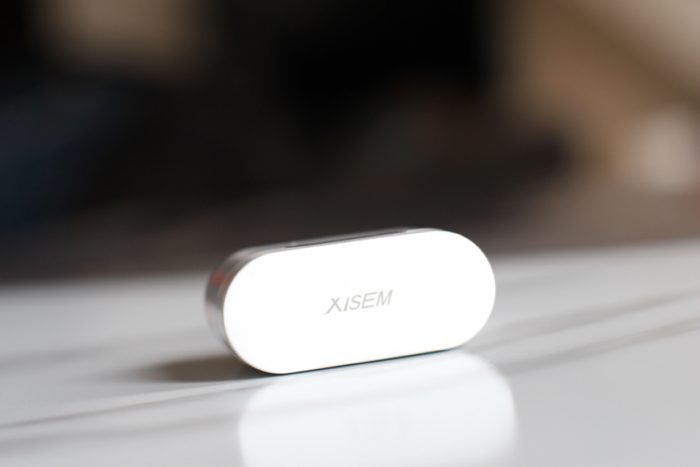 西圣这款耳机的充电盒设计比较特别,它并不能竖直的立在桌面上,而只能平放摆放,盒盖上的“XISEM”品牌LOGO在不经意间吸引着人的眼光。