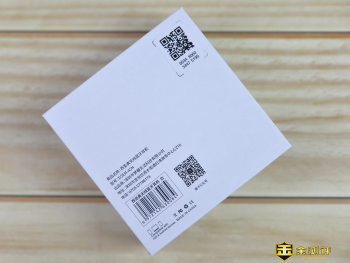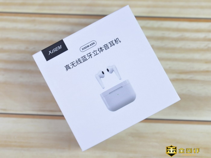 西圣XISEM真无线蓝牙耳机ASN的包装盒个头不大,正面左上角是西圣的品牌Logo,中间是耳机的型号和渲染图,包装盒的背面印有产品相关信息和厂家相关信息。