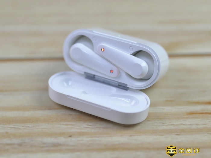 充电仓的侧面设计有一个充电指示灯,充电仓的侧面是钢琴烤漆质感,表面具有不错的镜面效果,所以整体看起来质感相当的不错。