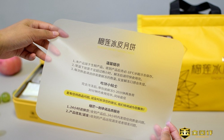 因为这款月饼,同我们在商超中购买的月饼有所不同,所以它还专门设计了一份储藏食用的提示单,还是挺用心了