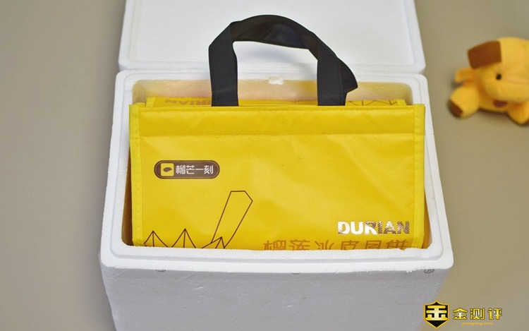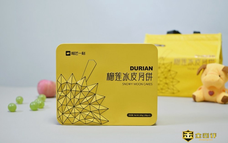 这款名为榴莲冰皮月饼,是榴芒一刻食品公司推出的一款以榴莲为主材的广式冰皮月饼,包装方面,选用了SF的保鲜箱,可以保持运输过程中月饼处于一个低温环境,确保用户买到手中口感更好