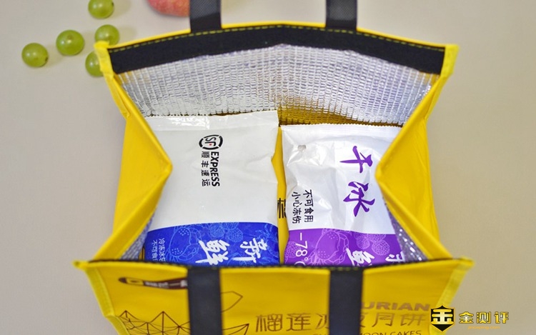 月饼采用特殊加工工艺,没有经过传统月饼那种油炸或烘焙的过程,在存储方面,需要低温,所以包装袋内侧是锡箔纸保温层,并且里面还放入一包干冰和一包冰袋,经过两天的运输,小编收到的时候,冰袋依旧没有融化的痕迹