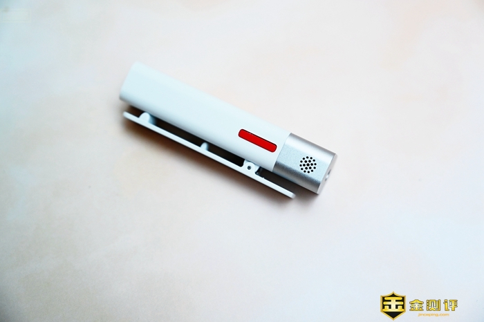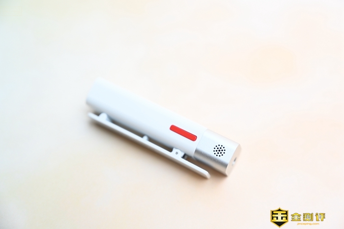 智麦SmartMike+本身设计非常简约,看起来很有现代感,而且其整体结构比较直白,大家拿起来应该就知道怎么使用。这款麦克风实际上只有笔盖大小,为了方便携带和操作,这款麦克风在机身上加入了一个领夹结构,可以方便的固定在衣领处,这样在录音的时候也不会妨碍其它操作。