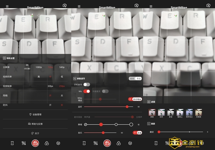 与手机或是相机上的内置麦克风相比,智麦SmartMike+拥有更强的降噪能力,其6mm的ECM咪头信噪比为70db,同时搭载的高通CSR8673蓝牙芯片也有出色的降噪表现,然后搭配塞宾智能SWISS算法,可以进一步提升降噪表现,此外在使用智麦APP录制时,还可以自由调整增益大小。所以凭借软硬件结合的四重降噪体系,智麦SmartMike+的录音质量要远远优于手机等设备的内置麦克风。