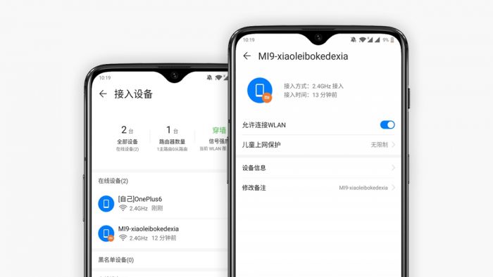 在接入设备选项中可以查看当前接入网络环境的终端设备,并且标记有设备接入的方式等。在这里还可以对每一台独立的设备进行操作,比如查看设备上网时长、限制上网时间段、拉入黑名单禁止联网等等。