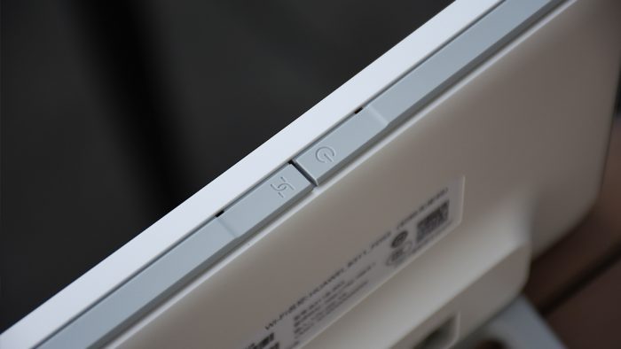 机身侧边由一条白色和一条灰色的腰线拼接,在机身顶部的位置预留有电源键和HiLink键,两颗按键正好处于灰色腰线拼接的位置,设计十分巧妙。