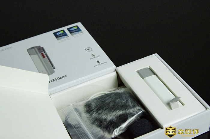 在塞宾智麦SmartMike+机身的顶端有3.5mm声音接口的设计,结合随机附带的耳塞,可以使它直接与手机进行搭配使用。通过长按红色开关按键使麦克风进入蓝牙配对模式,手机蓝牙通过搜索连接智麦设备即可完成蓝牙连接。