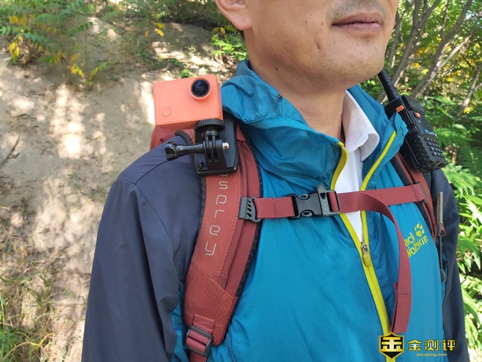 背包夹:由于经常参加群体组织的户外活动,双手需要拿着手杖,当有美景的时候,无法腾出手来拍摄,利用背包夹可以方便的从胸部角度拍摄,所拍出的画面让人有身临其境之感,适合爬山、郊游、步行等没有剧烈运动的活动。