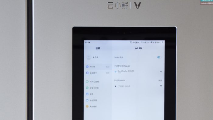 在使用这些功能之前,需要先为这套冰箱系统接入网络,操作也比较简单,点击右上方的设置按键即可进入设置菜单,在WiFi无线网络选项中选择网络配置密码即可。经过实际测试,支持2.4Ghz和5Ghz频段的无线网络。