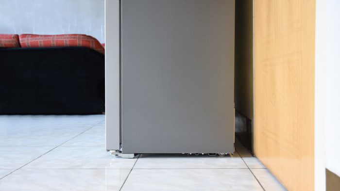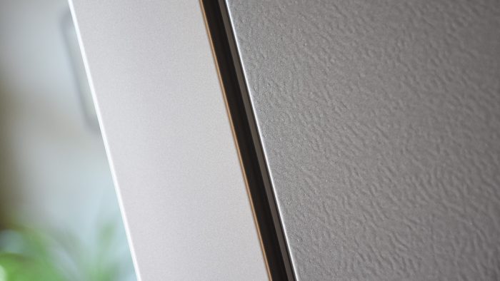 机身侧边金属盖板的配色稍微深一些,表面做了一些在冰箱上常见的凹凸纹理,质感比较光滑,后期搭理会相对容易很多。