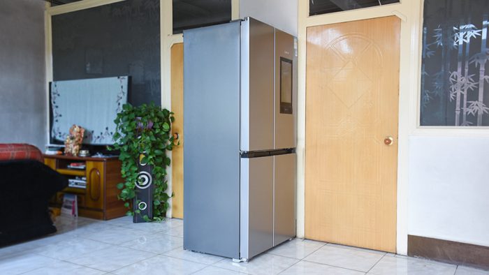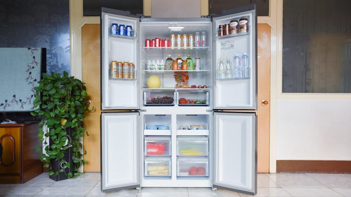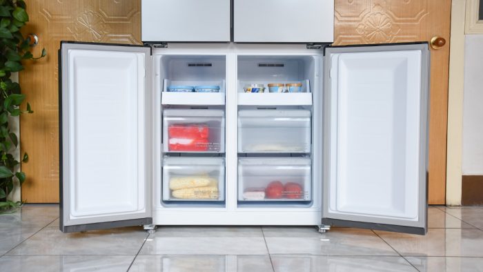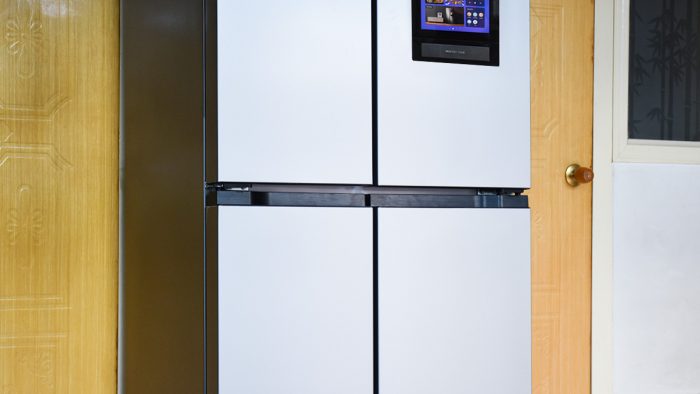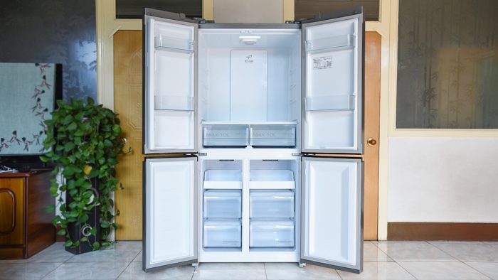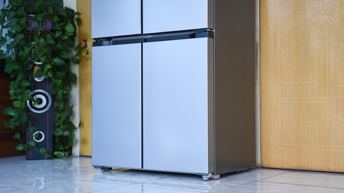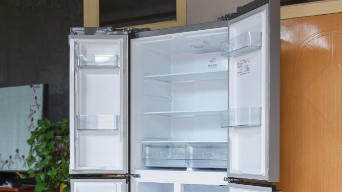 机身正面设计成十字四开门的方式,左侧的门较窄,右侧的门较宽,布局上更加科学合理。每一扇门里面都对应着独立的存储空间,如果你大致记得物品放在哪个区域,在拿取物品的时候打开对应的门即可,十分方便。