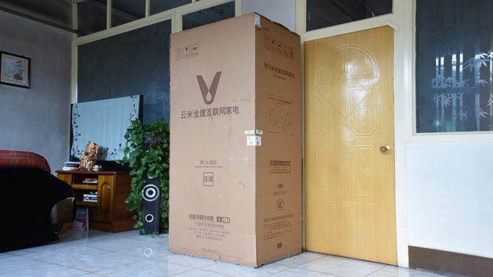 箱体正面印有“云米全屋互联网家电”的Logo和字样,并且将产品的正、反面做了区分,便于开箱之前将产品放置在合适的朝向。