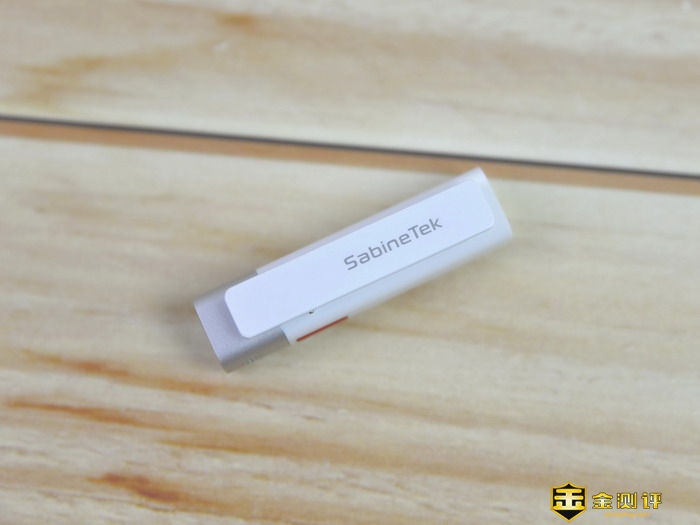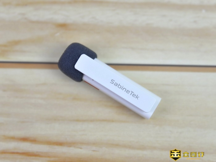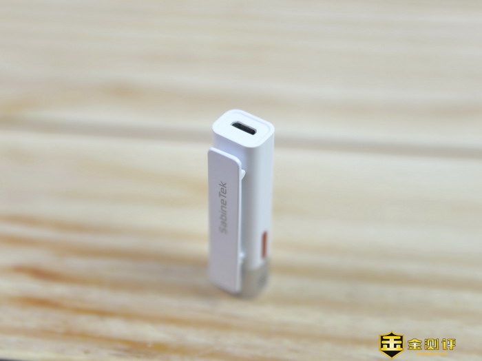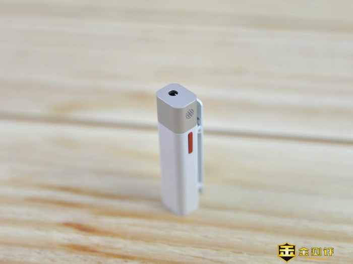 在塞宾智麦无线蓝牙麦克风的顶端设计有3.5mm音频插孔,这个插孔可以用来连接配件里的单边耳机。