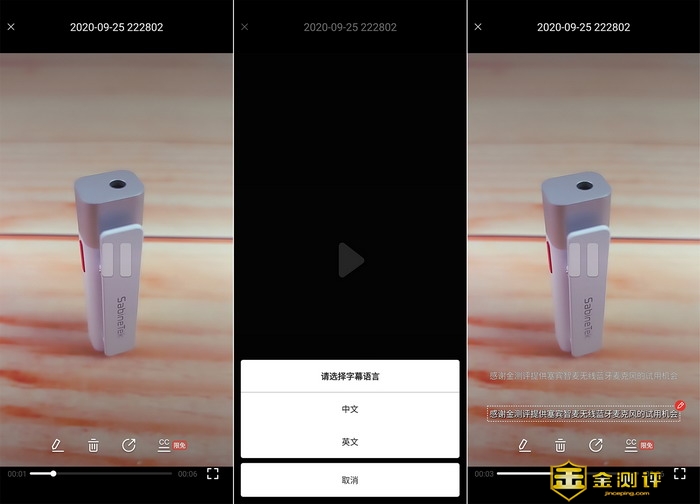 我在视频里录制的是“感谢金测评提供塞宾智麦无线蓝牙麦克风的试用机会”,语速偏快,中间无停顿,没想到完全没有识别错误,而且还快,所以这个功能我是真感觉厉害了。